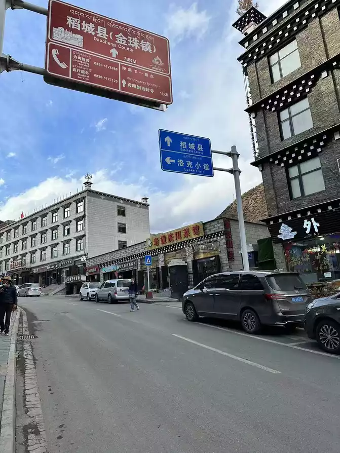 At almost ten o'clock, we took the bus of the Buddhist Academy down to the exit, called the driver's little brother, came out and waited for a while, and the little brother picked us up at the hotel to pull our luggage, and then went to Ganzi County to check in. In fact, today's itinerary is still relatively easy, the drive is not very far, and you can arrive at the hotel at almost two o'clock in the afternoon.