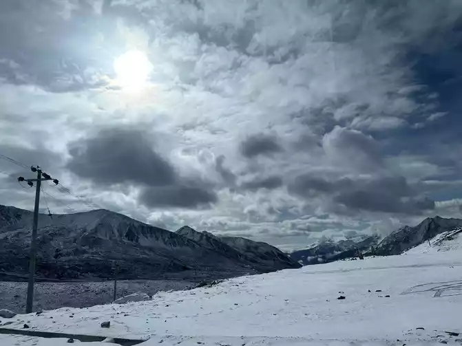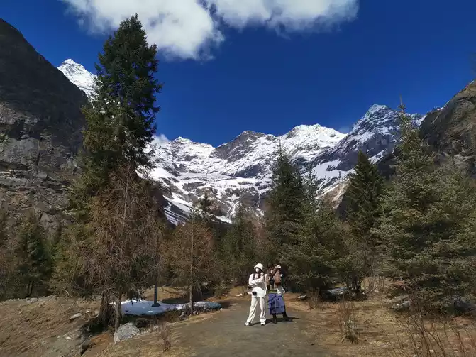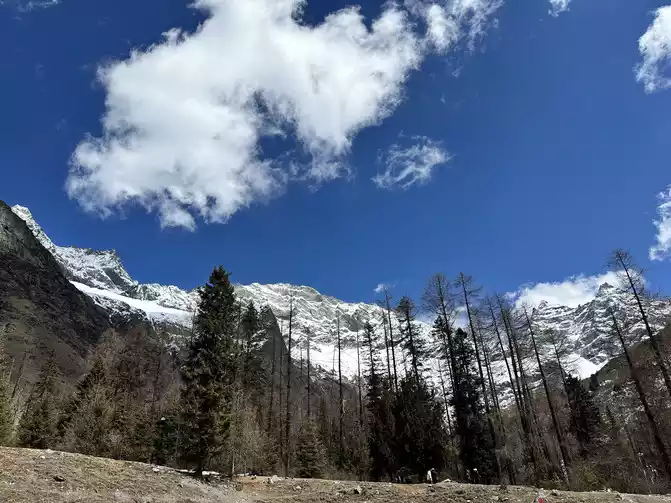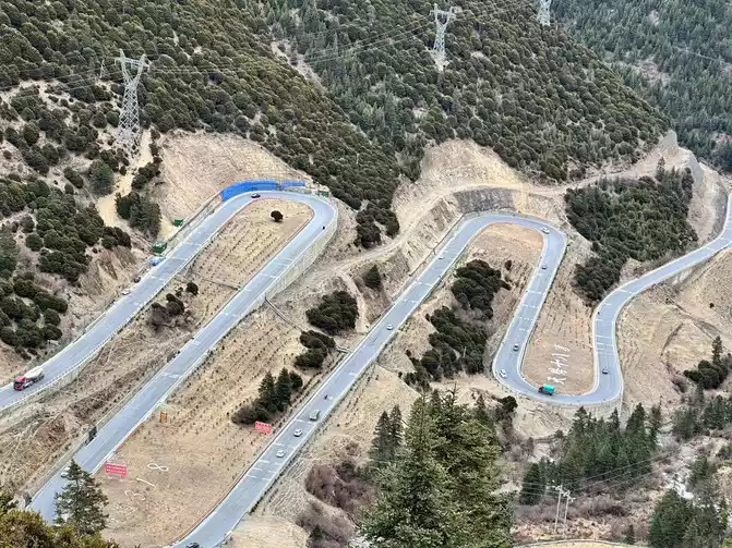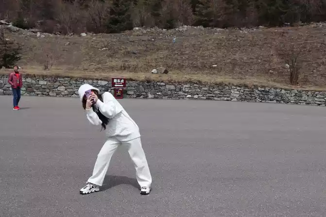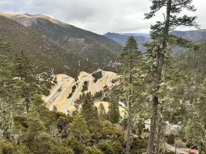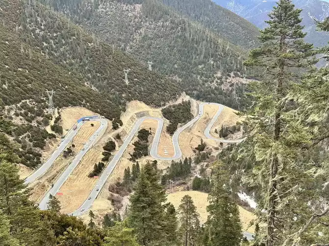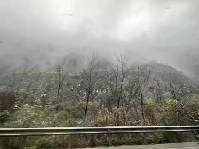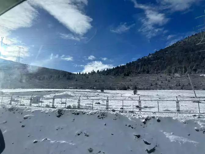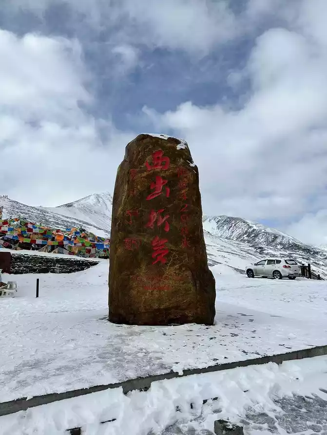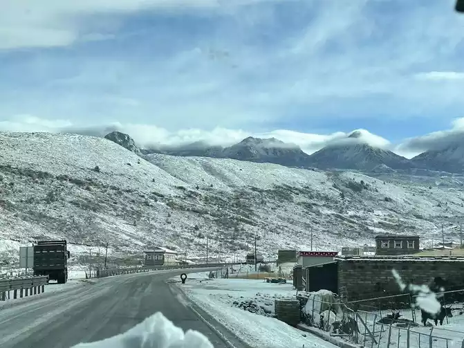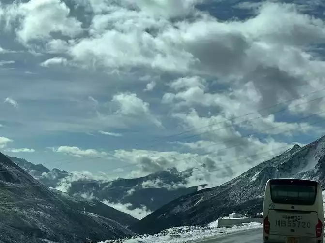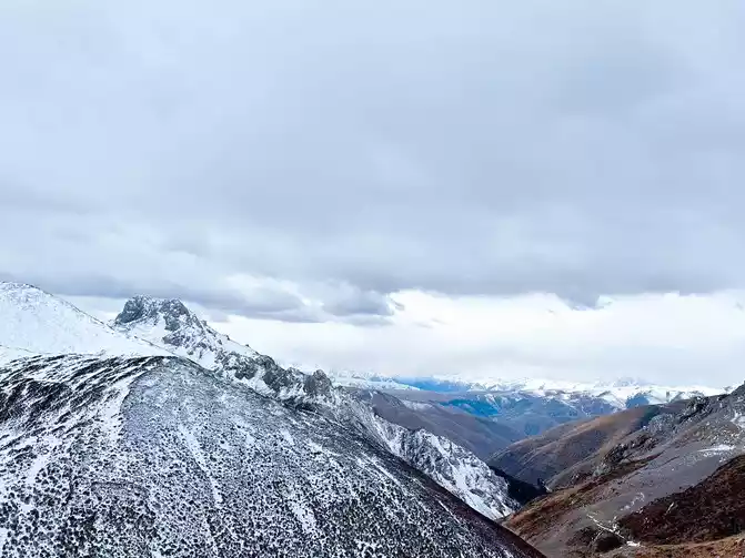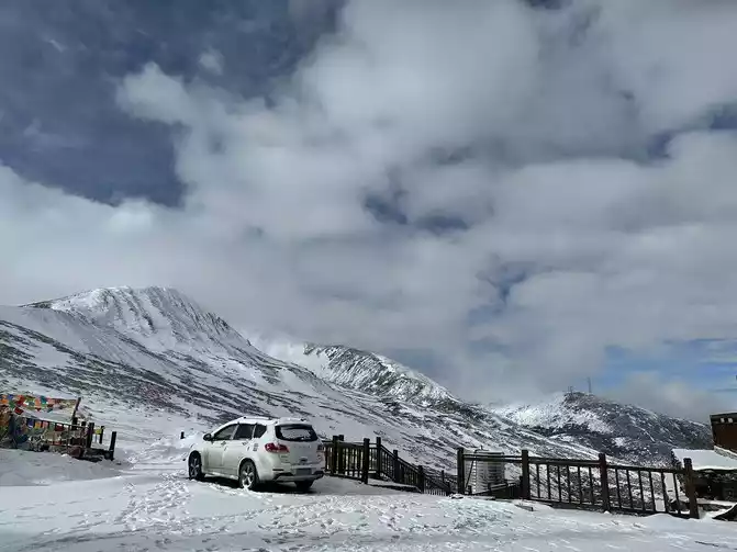 Fortunately, the driver's little brother has rich driving experience, we just need to take pictures of the scenery, we don't have to worry about the road conditions at all, in general, it is still very smooth to go up Zheduo Mountain, basically it means that there is nothing wrong, that is, drive slower, and there is a short section of road also hanging snow chains, but it will definitely be able to climb over Zheduo Mountain and return to Chengdu. Fortunately, in the off-season, I feel that there are not particularly many cars on the road, and it may also be controlled by the traffic police, and many large cars have not yet folded a lot of mountains.