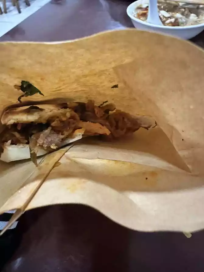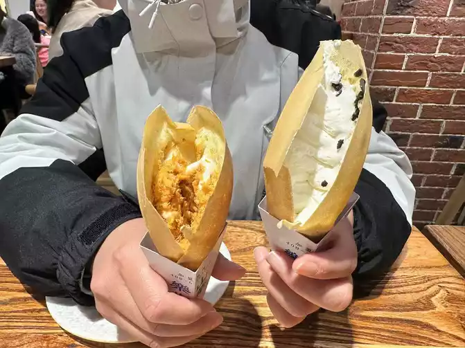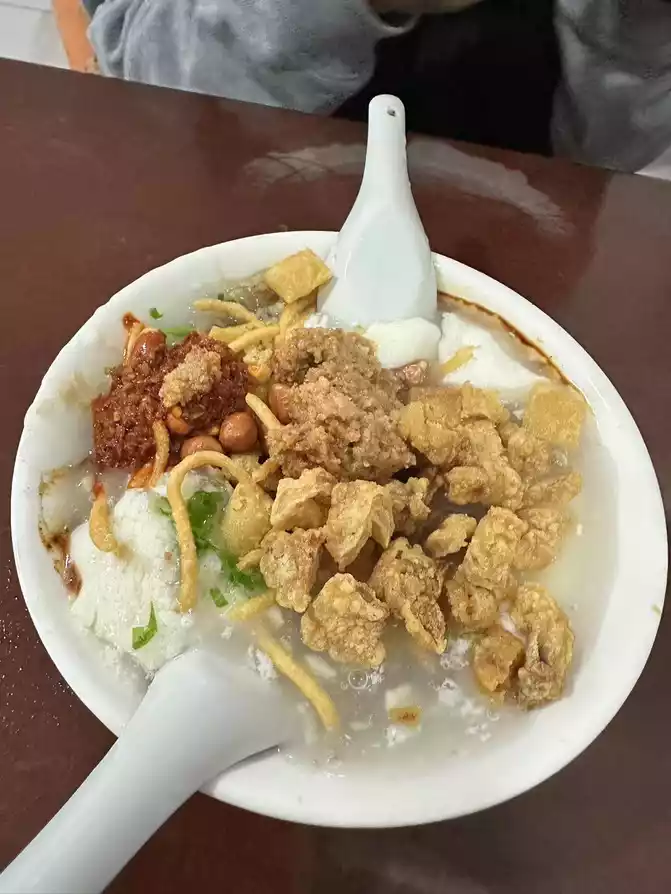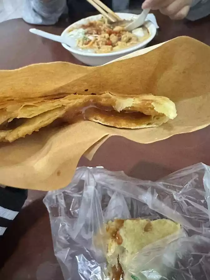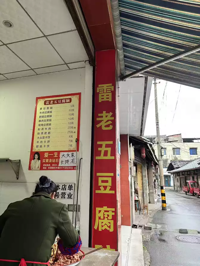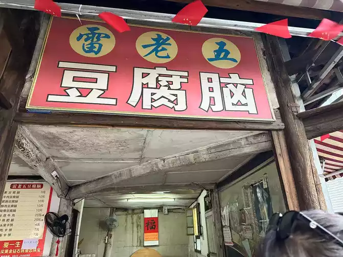 Next, take two steps forward, in the small alley on the left is Lei Laowu's tofu brain, order a bowl of mandarin duck tofu brain (beef and crispy meat), eat tofu brain and shortbread and crackers, wow , super satisfied.