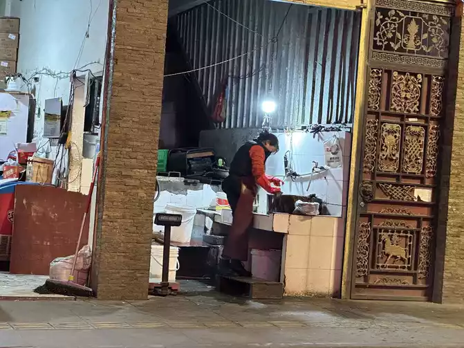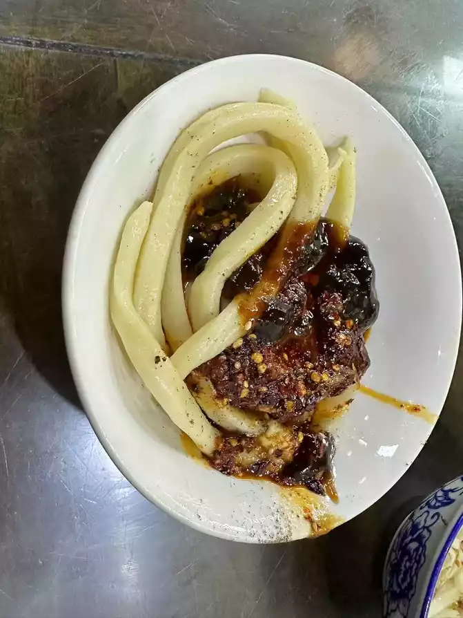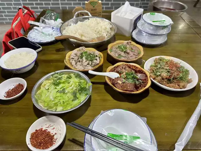 After eating, the alley opposite is Xiao Yang's beef, before nine o'clock, there are already people eating inside, we also quickly ordered, a tender beef, a fat beef, a cabbage, a blood Wang, a steamed beef, with chili noodles and rice, it's not too delicious hahaha. Then I secretly photographed the handsome boss...
