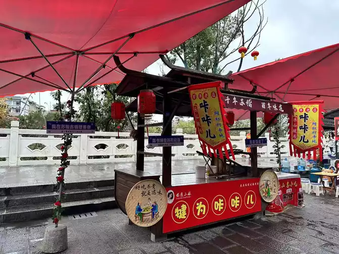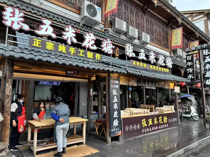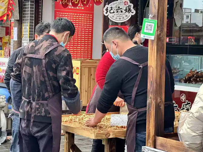 After storing the luggage at the front desk of the hotel, I took a taxi to Suji Ancient Town, located Xiao Yang's cocked beef, and got out of the car to see Zhang Laoqi's brown sugar cake before the queue started. I quickly bought brown sugar shortbread and beef crackers first.