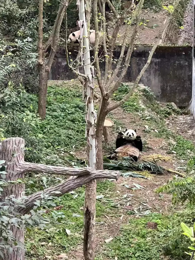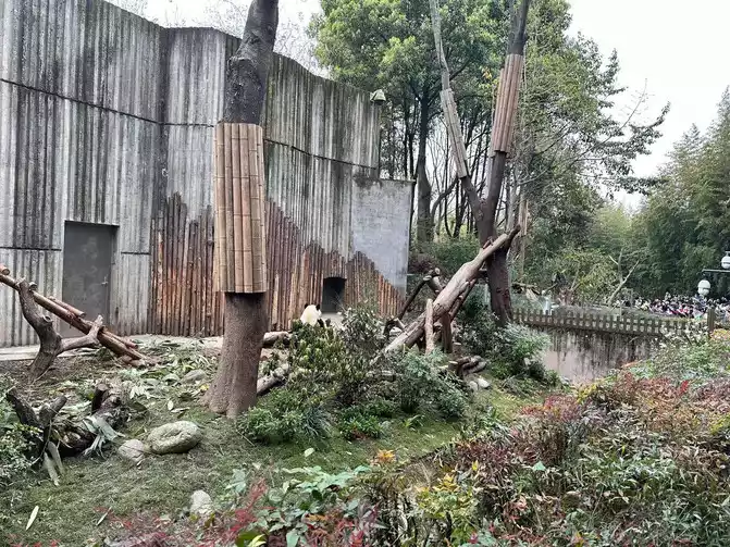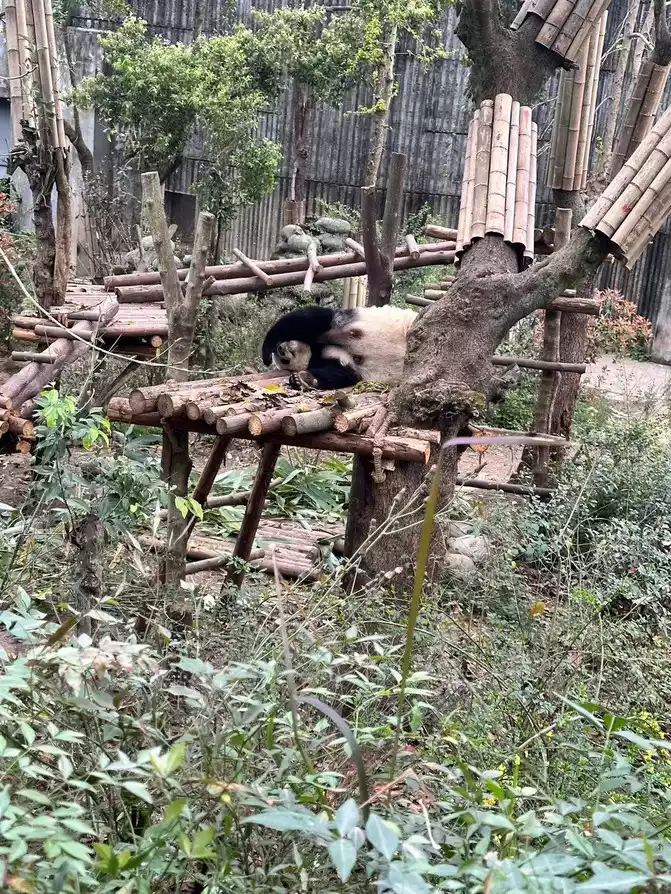 Entering the door, I first arrived at the adult garden, saw a bear lying down and eating bamboo, and then saw a sleeping bear on its back, not too cute.
