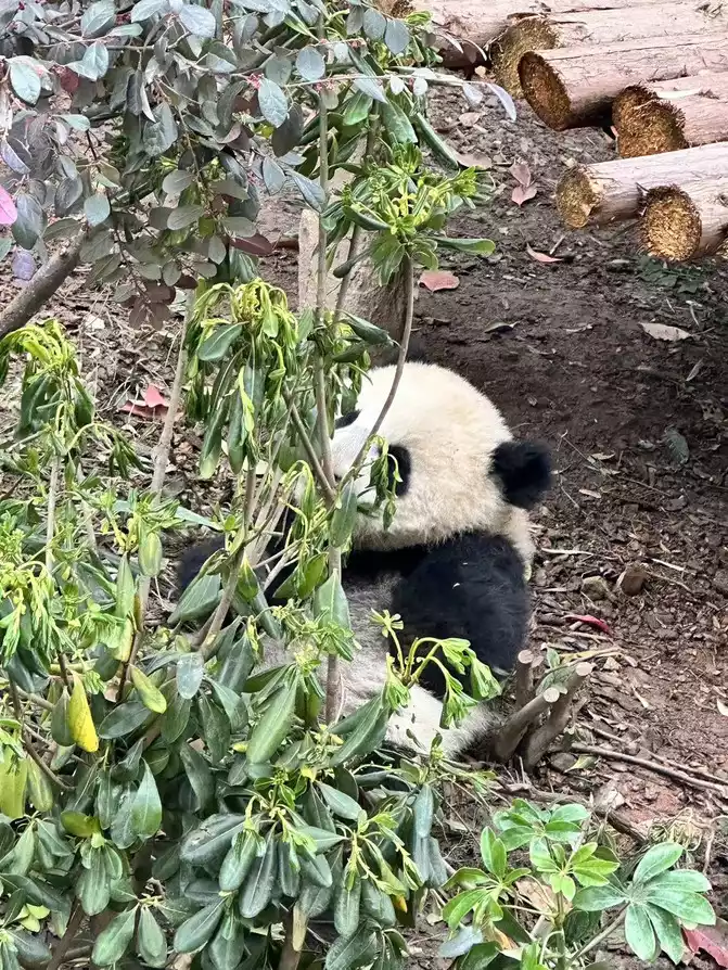 First, I saw the back of Dajiao eating bamboo.
