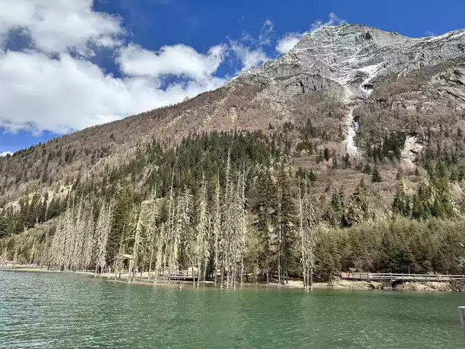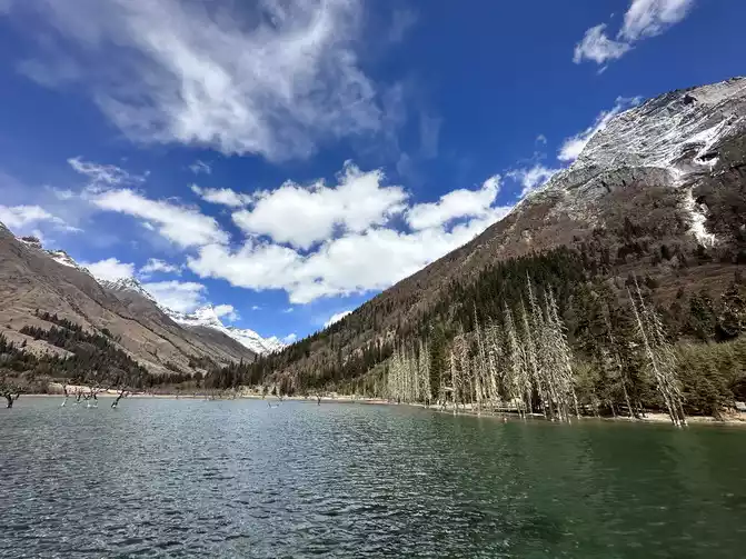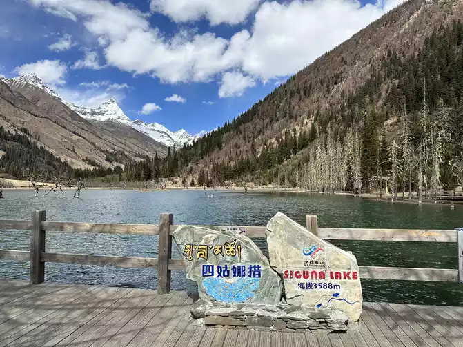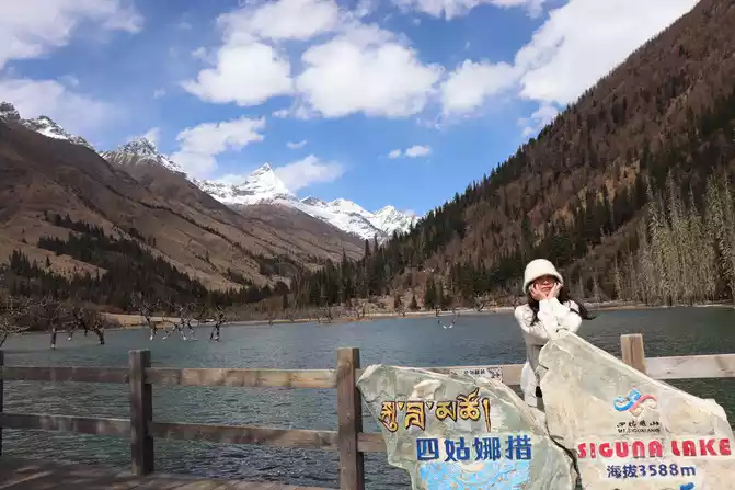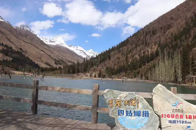 third stop of Shuangqiaogou is Sigu Nacuo, a pair of blue water and blue sky, not only a beautiful word can be described, the water is really too clear, you can't see such a scenery in the north, I envy the people ^_^ of Sichuan too