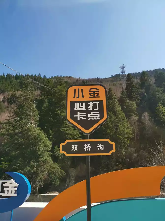 After leaving the scenic spot, I saw the sign of the must-check point in Xiaojin County, Aba Prefecture, and it was another stinky and beautiful photo, hehe, the weather is very good today.