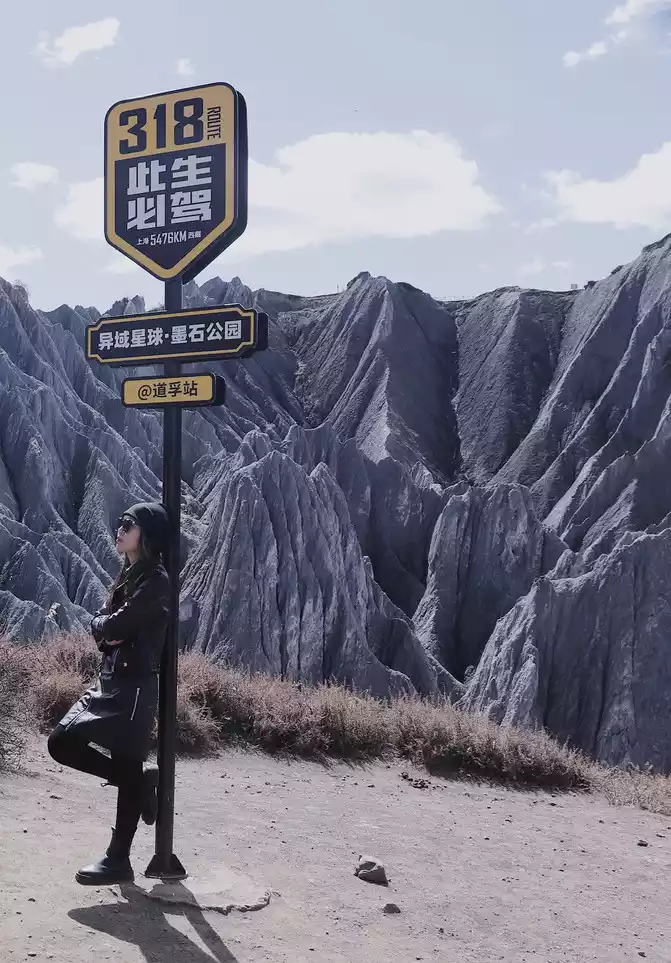 After the tour of the two observation decks, go directly down to the entrance of the scenic spot, you can take pictures at the check-in point of the 318 that must be driven in this life, we should still get up early, There is no one at the check-in point, you can take a picture of no one's sign, and I also left a commemorative photo hehe