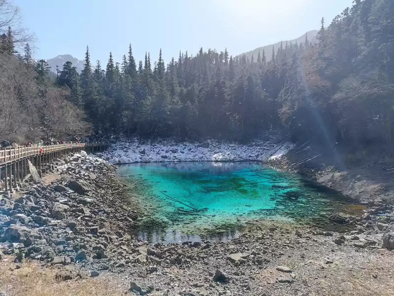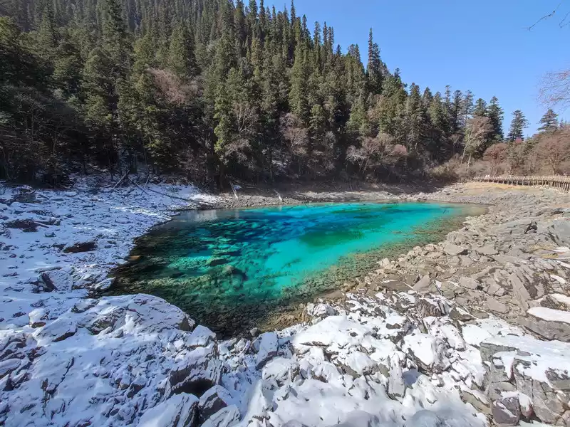 5️⃣ The most beautiful tour season in Jiuzhaigou is autumn (but also the peak season), this time we travel in late winter and early spring (cold season for tourism), the scenery will lack the colorful autumn, but the victory is in the few people, and there will be a unique flavor, the white snow is white and flawless, and the crystal clear sea water is also very healing! !