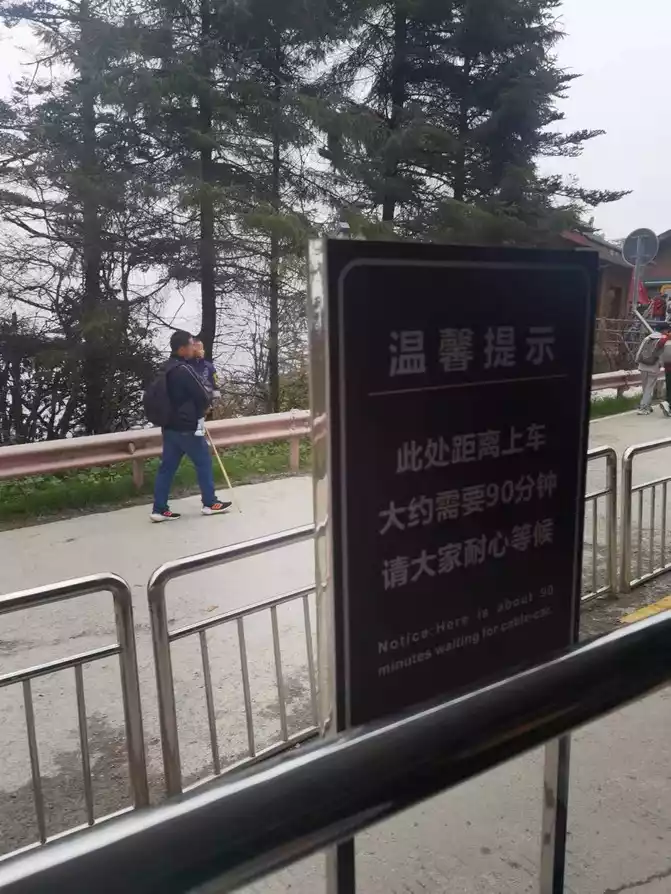 After getting off the bus, you can walk for half an hour to reach the Leidongping Ropeway, there are two ropeways, one is circulating, the other is round-trip, the circular type is closer to the drop-off point, but there are also more people going up, a total of 31 cable cars, each limited to six people. We came to the ropeway boarding area, there was already a long queue outside, and the line was not particularly long, and then we followed, but the line section was large (about 7 or 8 people in a row), and the further we went forward, the narrower the line, so the speed of progress was very slow. How did we know that after half an hour, we came to a sign that said "It takes about 90 minutes to get on the bus here", and we suddenly felt collapsed, but it took an hour and a half to hike up the mountain, and there was already a little altitude sickness above 2,500 meters above sea level. After waiting for about an hour, I finally got on the cable car. As soon as he sat down, he was pushed out by a huge gear, like soaring up, and at this time the sky suddenly cleared, probably because he had risen to the clouds. The wife has a fear of heights and does not dare to open her eyes, and the two children are so excited that they can't close their mouths, one overlooking the white clouds below the mountain, the other looking at the scenery on the top of the mountain, so uncomfortable. In five minutes of driving, climb more than 500 meters and get off at the top of the mountain.