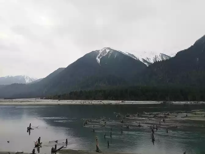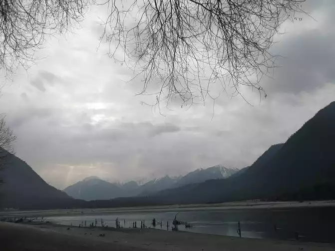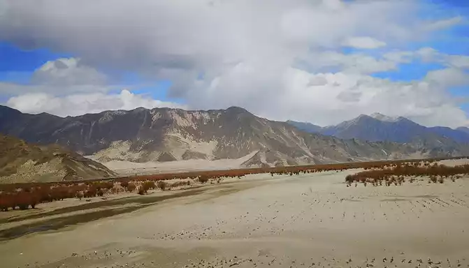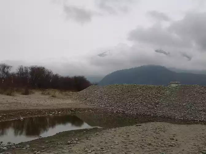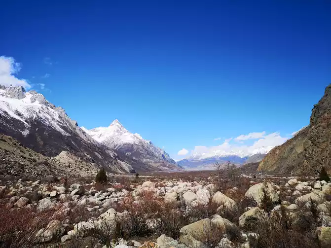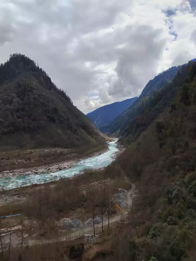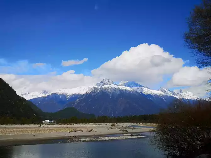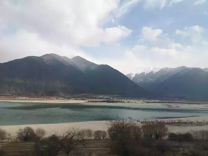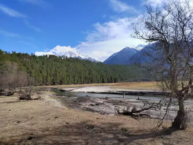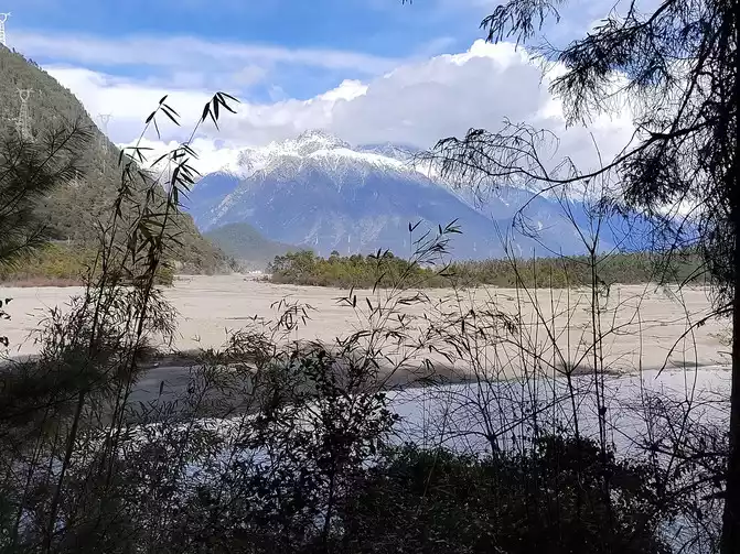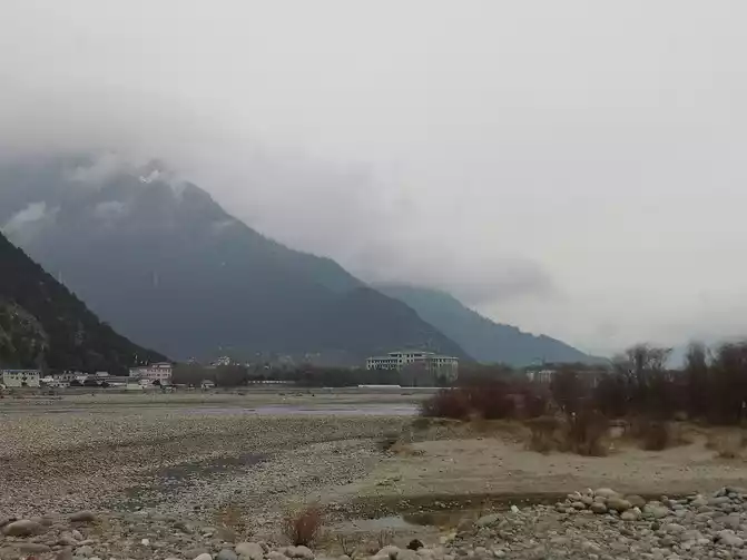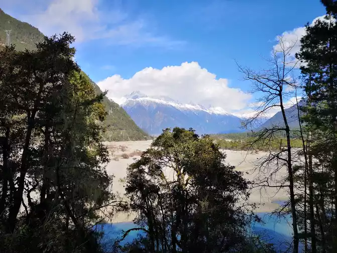 The water supply of the Niyang River is mainly snow-capped mountain meltwater, and the Niyang River should be very beautiful in summer. Unfortunately, when we came, it was a dry season, and a large area of gravel was exposed in the river, and the fine water flowed slowly between the gravel, dotted with several puddles, and the snow-capped mountains in the distance appeared and disappeared in the clouds and mist.