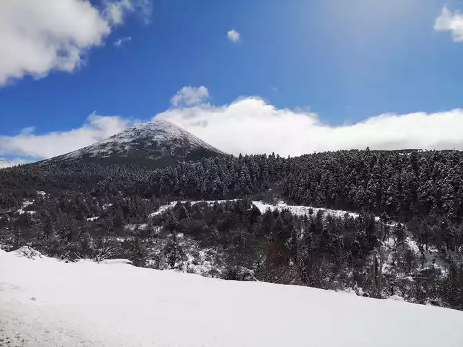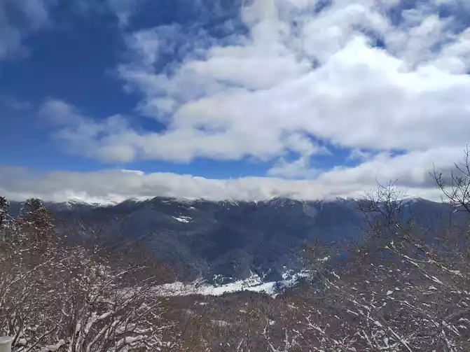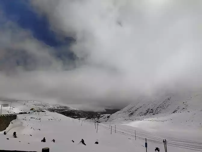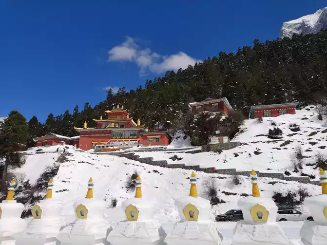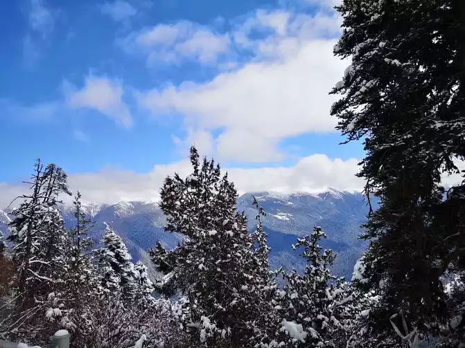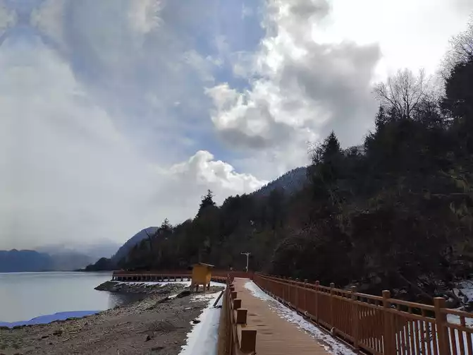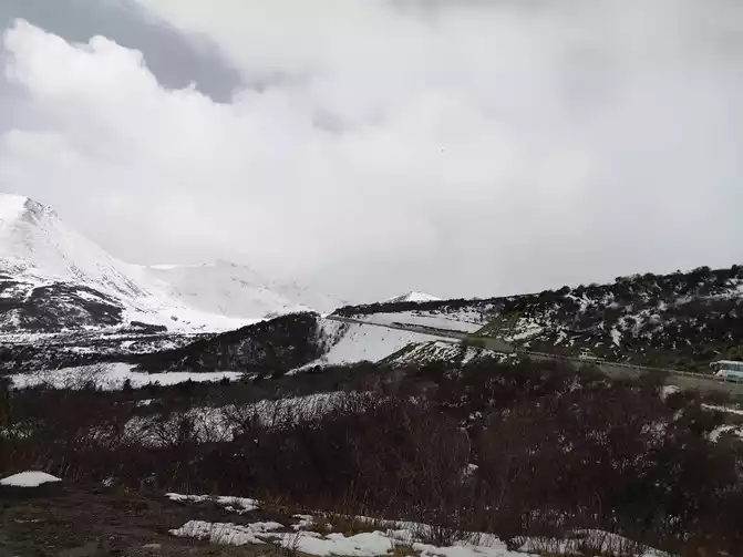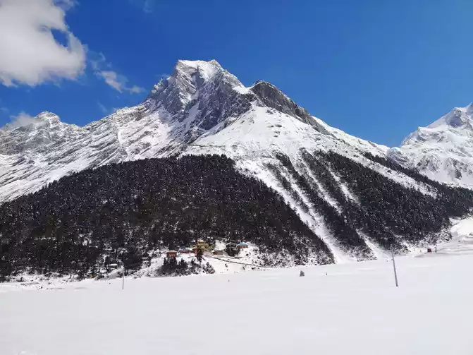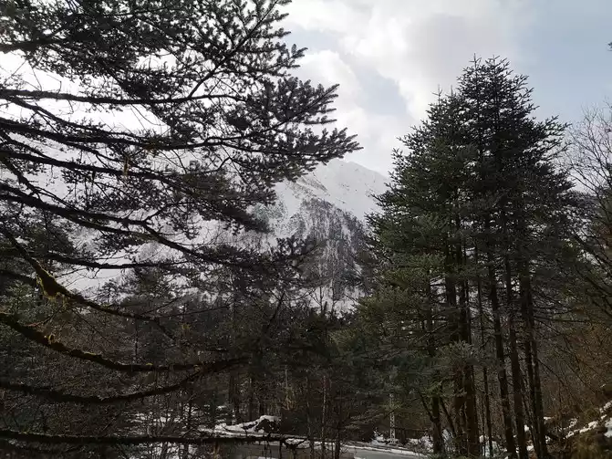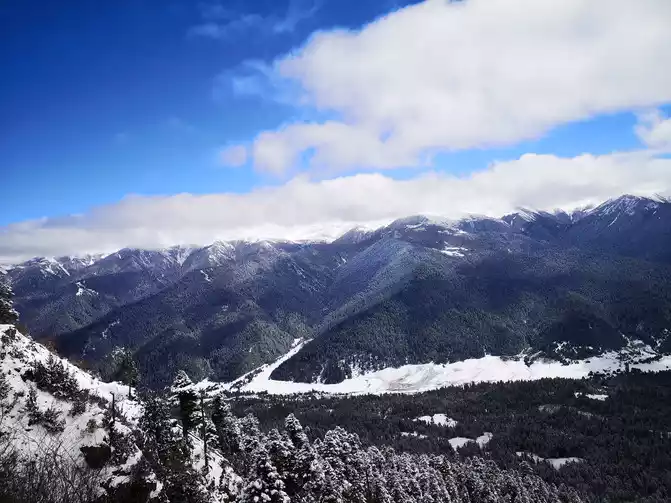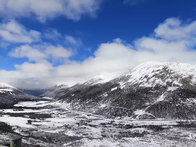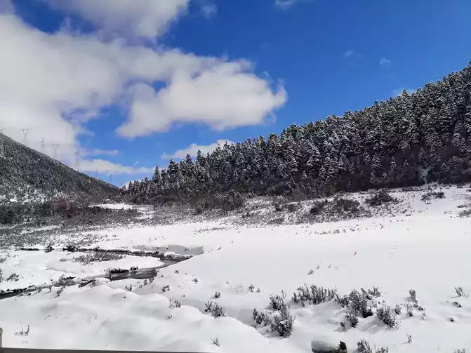 The car drove along National Highway 318, passing through Nyingchi Town and entering Sejila Mountain. Sejila Mountain belongs to the Nianqing Tanggula Mountains, which is the boundary between the eastern and central and western parts of Nyingchi County in Tibet, and is the watershed between the Niyang River Basin and the Palong Zangbo River, and is crossed by the southern route of the Sichuan-Tibet Highway. I heard that it snowed heavily on Sejila Mountain last night, and today the slopes are covered with thick snow.