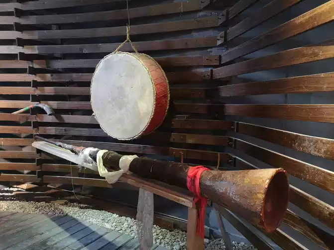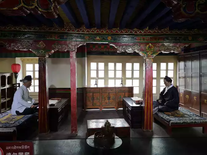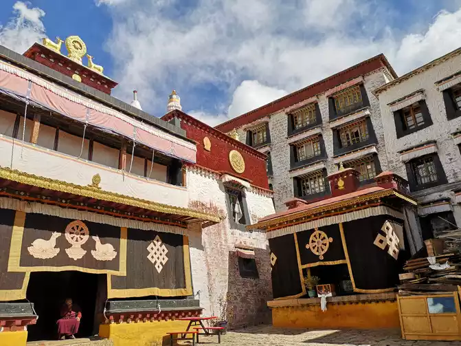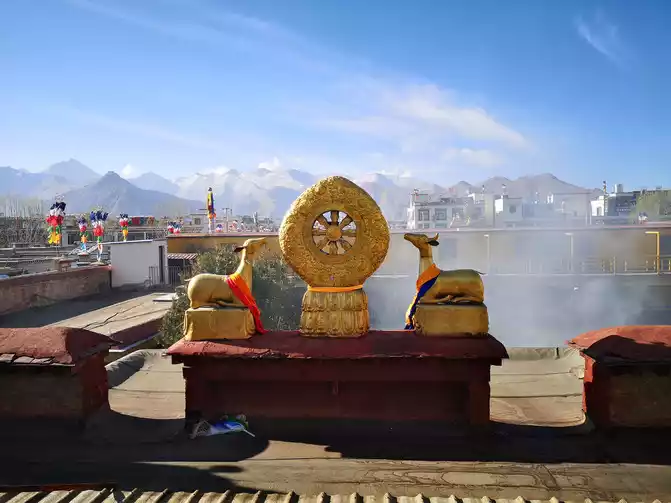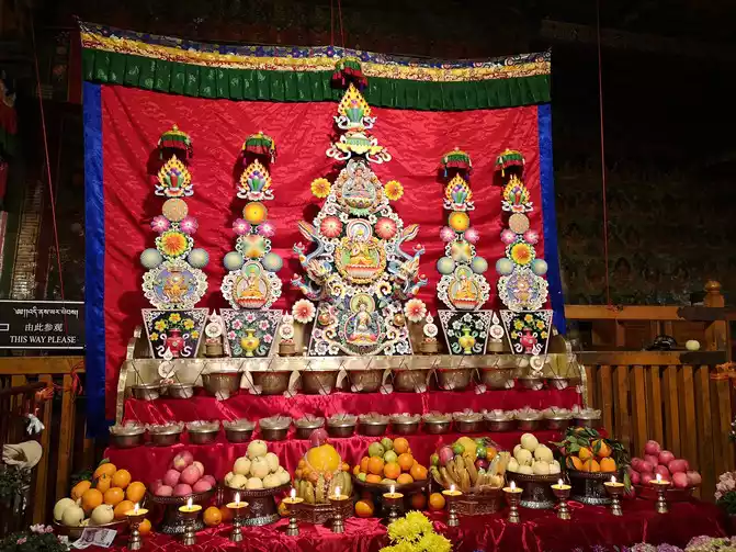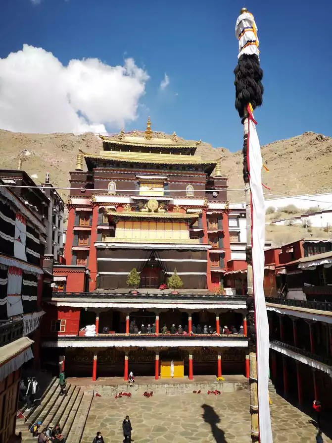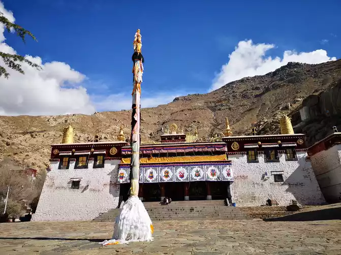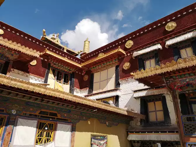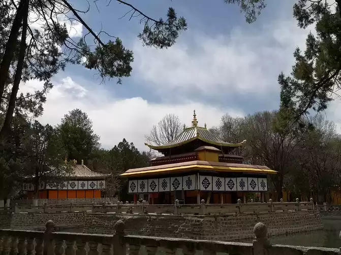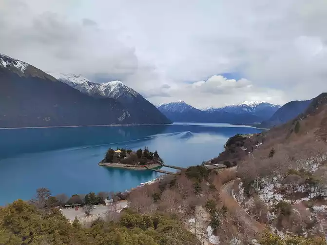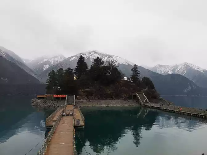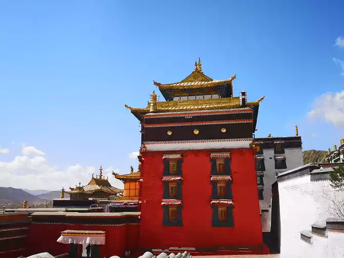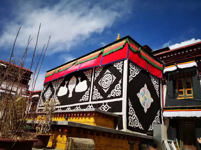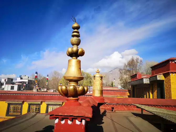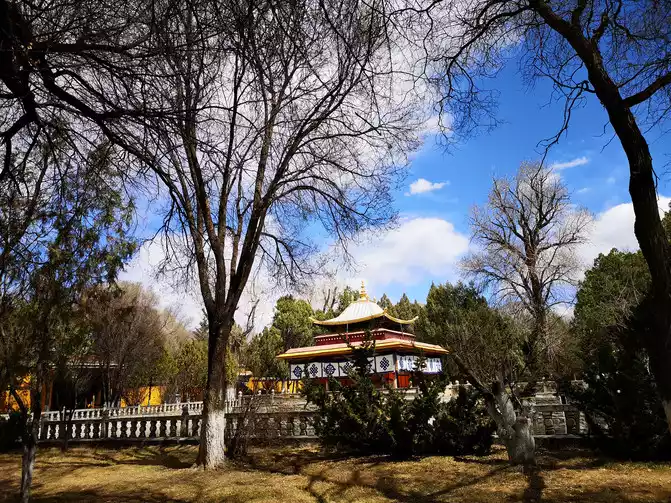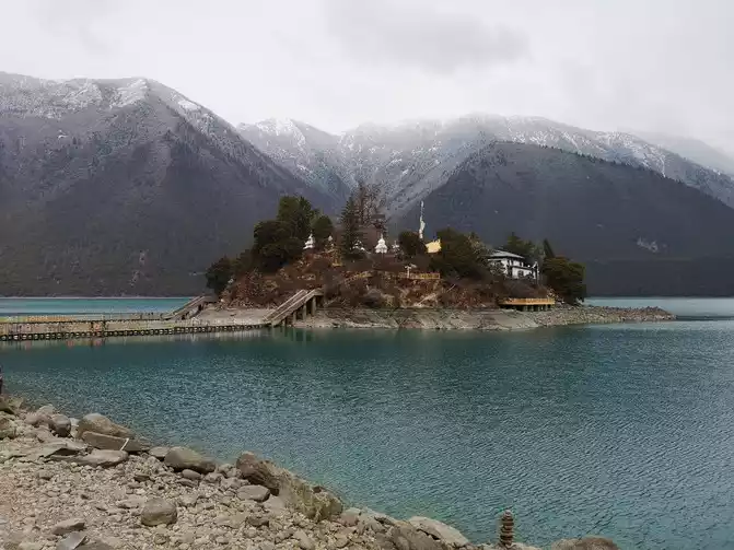 Theisland in the center of the lake is called Tashi Island, which is about 100 meters away from the shore and has a plank road to connect with the shore. Legend has it that the island is a "hollow island", that is, the island is not connected to the bottom of the lake and floats on the lake. On the island, there is a Tang Dynasty building "Cuozong Gongpa Temple", which is a famous Hongjiao Nyingma temple in Tibet, built at the end of the Tang Dynasty and has a history of more than 1,500 years. Cuozong Temple is a civil structure, with two floors, and the main hall is dedicated to lotus peanuts, thousand-handed Guanyin and golden boys and jade girls.