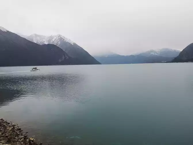 can walk around the island along the transfer road of the peninsula, because time is limited, we can only walk to the lake. After playing around the lake for a while, on the way back to the visitor center by sightseeing bus, the sightseeing car drove along the road on the peninsula, and you could see the landscape of the peninsula on the car.