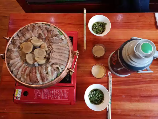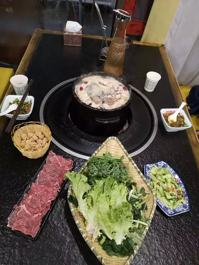 Nyingchi is most famous for the stone pot, back to the city of Nyingchi, we went to taste the stone pot mushroom soup yak meat, the portion is very large, the yak meat is very tender, and the mushroom soup is delicious.