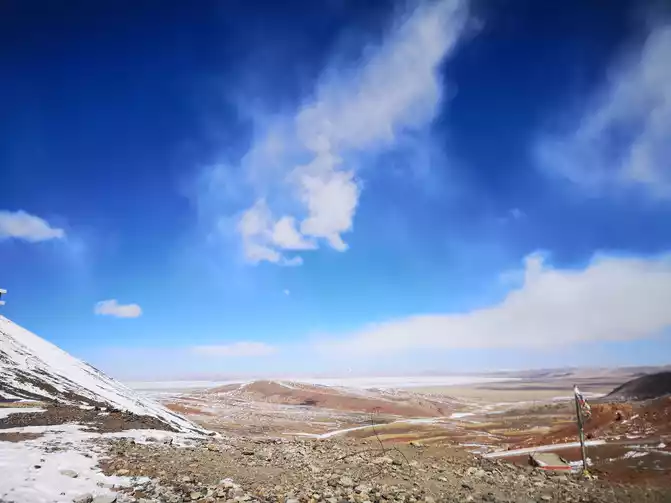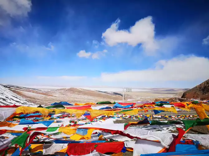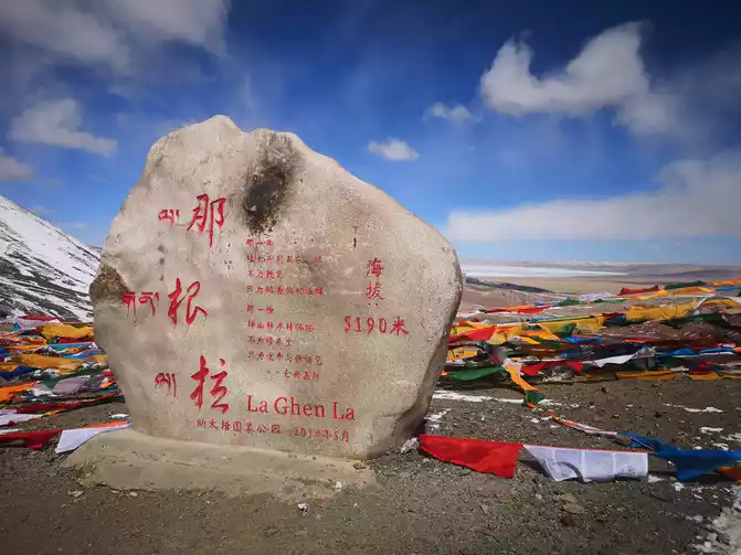 Located in Dangxiong County, Tibet, at an altitude of 5,190 meters, Nagenla Pass is the only place to cross the Nianqing Tanggula Mountains to Namtsov, and it is also a sacred place in the hearts of Tibetans. A stone monument indicating the altitude was erected at the pass, and the mani pile on the pass was covered with prayer flags. Looking north from the mountain pass, you can see the blue and blue Namtso in the distance. Standing on this mountain pass with an altitude of more than 5,000 meters, which belongs to the so-called forbidden area of life, looking at the four fields, the heart will suddenly feel majestic, vast and vast.