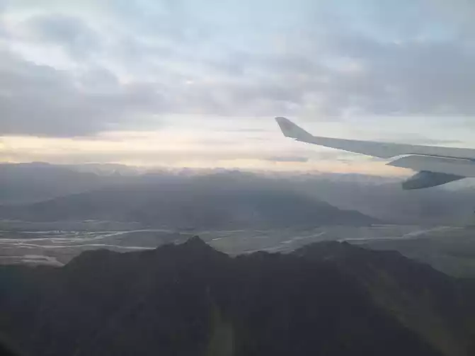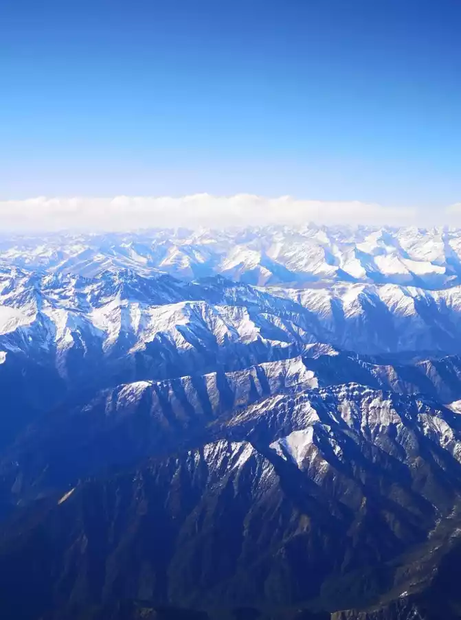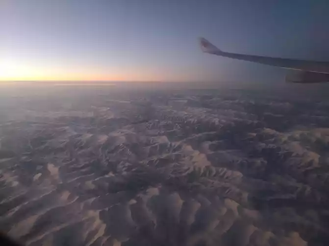 Just after dawn, we came to the airport. At 6 a.m., the plane took off on time and entered Tibet, the sun was rising, and you could see the continuous snow-capped mountains bathed in the morning glow on the plane, which looked desolate and mysterious.