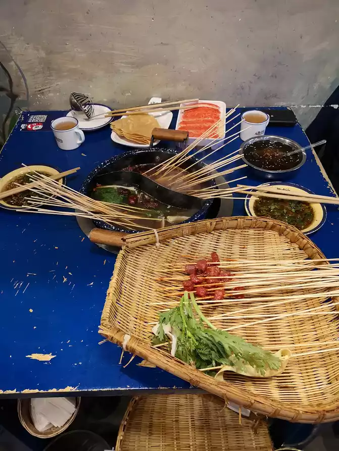 After a day's journey, arrive at the hotel near Tianfu Square in the evening. Every time I come to Chengdu, I have to go to eat skewer hot pot, and this time is no exception, after a short rest in the hotel, I came to the roadside skewer hot pot restaurant near the hotel to eat skewer hot pot.