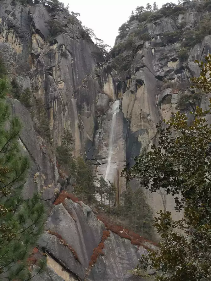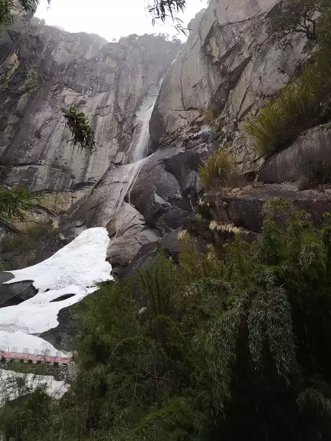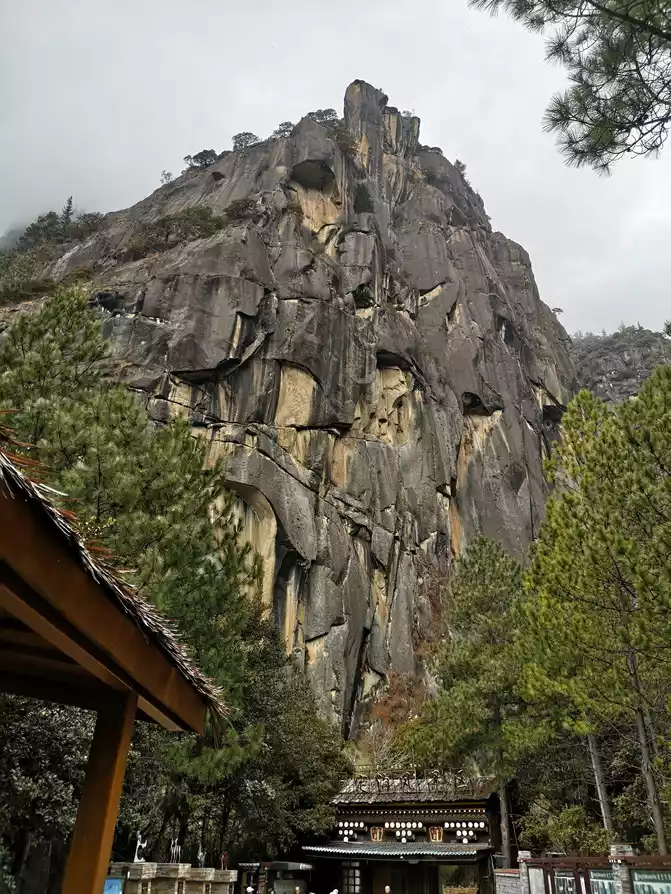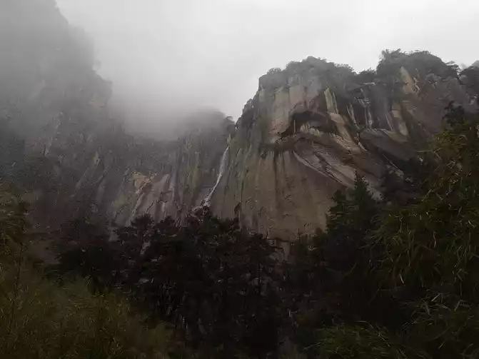 We just entered the scenic spot and happened to meet a tour guide walking and explaining with a tour group, so we followed the tour guide and watched the various strange images on the cliff while listening to his story. Walking all the way, when I walked to the edge of the Tianfo Waterfall, snowflakes began to float, and after a while, the surroundings were shrouded in fog, and the various images on the cliff wall were blurred.