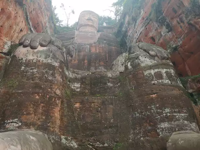 Leshan Giant Buddha, also known as Lingyun Giant Buddha, is located on the side of Lingyun Temple on the east bank of the Nanmin River in Leshan City, Sichuan Province, near the confluence of the Dadu River, Qingyi River and Minjiang River, and across the river from Leshan City. The Leshan Giant Buddha is carved on the rock wall at the confluence of the Min River, Qingyi River and Dadu River, and was carved by Monk Haitong in order to reduce the water potential and save all living beings. The Buddha statue was excavated in the early years of Tang Xuanzong's Kaiyuan era (713) and completed in the 19th year of Emperor Dezong's Zhenyuan (803), which lasted 90 years. The Big Buddha is a seated statue of Maitreya, 71 meters high, 8.5 meters wide on the instep, head level with the mountain, feet on the river, hands on the knees, well-proportioned posture, solemn posture, chiseled by the mountain, sitting upright by the river, graceful and magnanimous, majestic, praised by poets as "the mountain is a Buddha, the Buddha is a mountain". On December 6, 1996, the Leshan Giant Buddha was approved by UNESCO as a "World Cultural and Natural Heritage" and officially included in the World Heritage List.