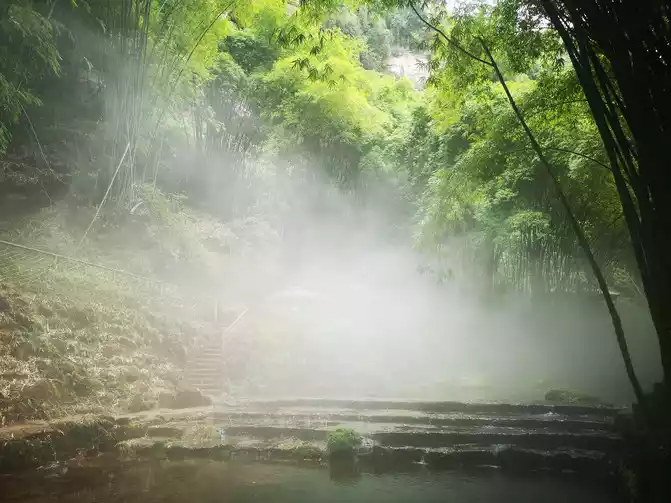 There are not many people in the scenic area, there are lush green bamboos everywhere, and the moist air rushes towards you, and you feel cool when you are in it.