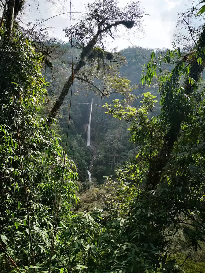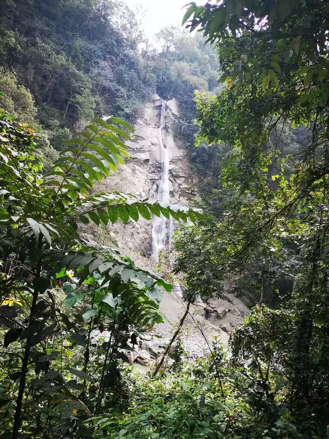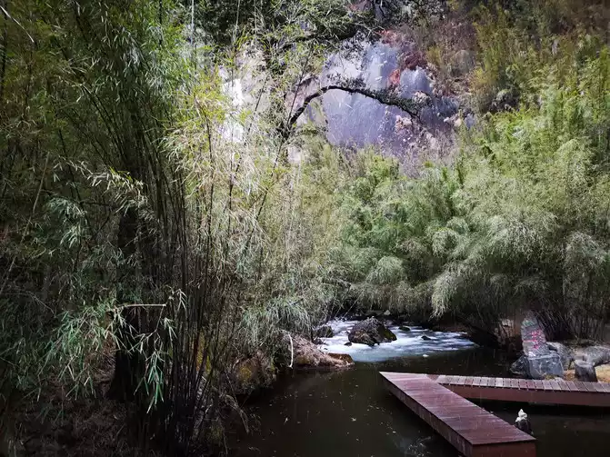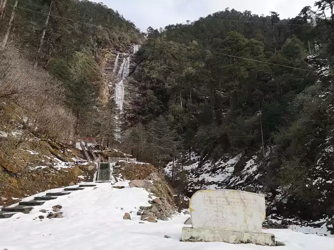 Kadinggou Scenic Area, also known as Kading Tianfo Waterfall Forest Scenic Area, is located on the banks of the Niyang River 24 kilometers away from Bayi Town on National Highway 318. The main attraction in the scenic area is the Tianfo Waterfall, which has a waterfall with a drop of nearly 200 meters, and the silver chain-like water flows on the cliff, majestic and spectacular. A naturally formed Buddha in the waterfall has a kind face, appearing and disappearing in the waterfall, hence the name of the Heavenly Buddha Waterfall. The waterfall water floats down like a silver chain when it is small, and when the water is strong, it is majestic and thrilling. There is a naturally formed Buddha statue on the rock wall behind the waterfall, which is said to be the protector of Tibetan compatriots in the Nyingchi area, with a clear face, as if it was artificially carved. There are male and female protectors on both sides of the Buddha statues, and they all have solemn and vivid demeanors. The female protector Bandan Ram on the right is about 100 meters high, and it can be vaguely seen that she is wearing a veil, wearing a ribbon around her waist, and holding Buddha beads, her image is lifelike; On the left is Jigong worshiping Buddha, and the image is just as realistic. In addition to the heavenly Buddha and the protectors on both sides, there are also naturally formed abstract Buddhist landscapes such as the Tathagata, Guanyin, lama chanting, the divine turtle calling the sky, the divine eagle offering treasures, and the butter lamp, which are said to be more visible to people with Buddhist connections.