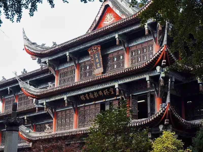 Wenshu Monastery is located in Qingyang District, Chengdu, covering an area of more than 200,000 square meters, and was founded during the Sui Dynasty (605-617) and named Xinxiang Temple. In the fifth year of Huichang (845), Tang Wuzong destroyed the Buddha and the temple was destroyed. In the thirty-sixth year of Kangxi (1697), funds were raised to rebuild the temple and was renamed Wenshu Monastery. The Kangxi Emperor's imperial pen "Empty Forest" was given a copy of the imperial seal, and the Kangxi Emperor's ink still exists in the courtyard. Wenshu Monastery is one of the key monasteries of Chinese-speaking Buddhism in the country determined by the State Council, the first of the four major Zen forests in the upper and lower reaches of the Yangtze River in China, and is a Buddhist holy place integrating Zen forest relics, ancient garden buildings, worship and sightseeing, and religious practice. The existing buildings of Wenshu Monastery are typical of the ancient building style of the western Sichuan Plain, all wooden buildings, and the six-fold main hall is facing the central axis of the mountain gate in turn, which is magnificent and majestic.