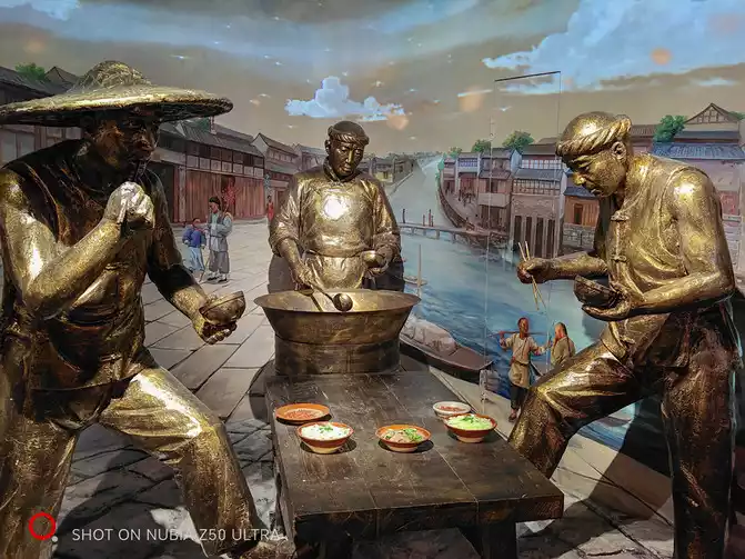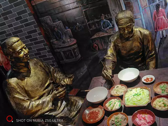 a special memorial hall in the town to tell the history of Suji Ancient Town and the origin of the beef, it turned out that the "cow in the water" soup pot sold on the roadside was cheap and delicious, loved by boatmen and footmen, but the conditions restricted the store to only set up a table, so these diners had to stand with one foot and one foot on the beam under the table.