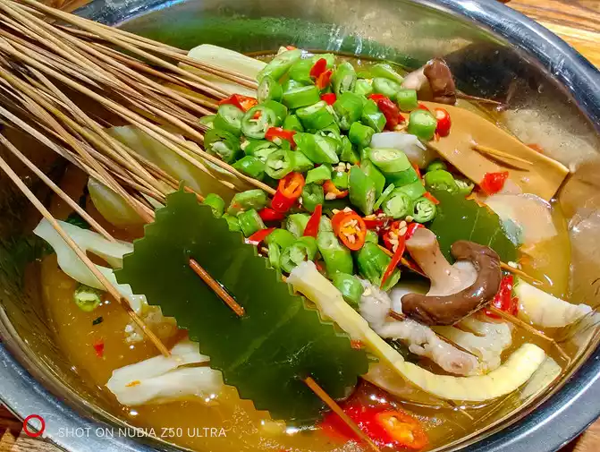 The main store is located at No. 41 East Street, Central District, Leshan City, which is definitely the king of Leshan food culture, and it is also a delicacy that the author must check in every time he goes to Leshan. The so-called bowl is actually a kind of shape description of the basin, the early clay pot basin is now replaced with stainless steel basin, the ingredients are not only chicken, the meat and vegetarian dishes that can be eaten in the skewers can basically be eaten in the bowl chicken.