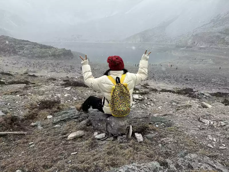 This is the five-colored sea! Then it started snowing!