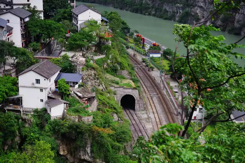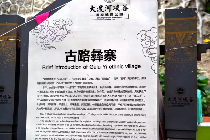 There is a visitor center and parking lot at the entrance of the ladder house in Gulu Village, which is also the location of the iconic "first-line sky" culvert bridge of the Chengdu-Kunming Railway.