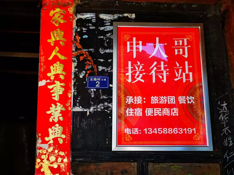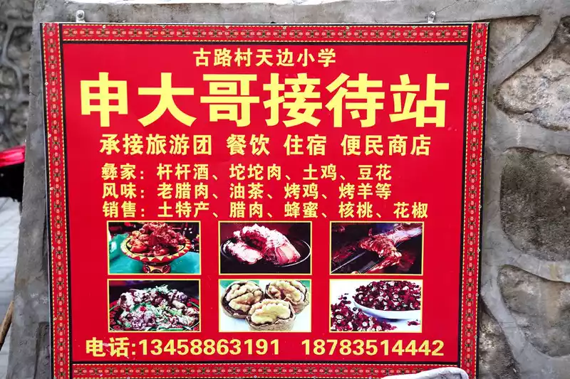 However, these 2KM need to be talked about again. First of all, I said earlier that I met a few people who went down the mountain, by the way, they were all middle-aged people, and few young people climbed up except for the Internet celebrity photos and videos below, they basically only arrived at the cable car station and did not walk the last 2KM. Secondly, between us, the proprietress of the "Three Little Nest" homestay that I contacted at the beginning but didn't live in gave me a farmer's phone number on the mountain, saying that I came up to eat and find him, his food was original and delicious, the day before my wife called to contact, but people heard that we only had 4 people, and there were too few people to receive at all, so they gave us another person to call us to find him, and I later learned that this person was the "Brother Shen" that I had no intention of taking pictures of when we started climbing the mountain, and he was the village chief or something. He kept asking us when we would arrive, in fact, we originally wanted to give up at the cable car station, because this Brother Shen was in the village committee shown on the sign, and his wife was so kind-hearted, saying that people were waiting for us to eat, let's grit our teeth and walk over!
