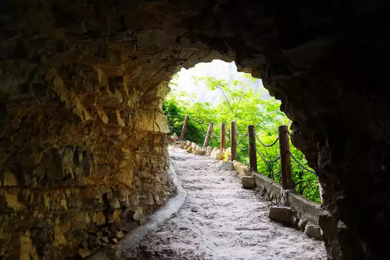 If you want to stay for one night in the Grand Canyon, you can either start the scenic spot visitor center, where there are several homestays, mainly in the so-called first village of the canyon: Shengli Village, which is what many people call the "Railway Soldiers Museum" or "Guancunba Station". The whole village road is very narrow, it is a one-way street, from the direction we used to go through a tunnel to reach the "Railway Soldiers Museum" (here began to be rebuilt last year, temporarily closed), this travelogue I made a new attempt for the first time, I will show you the itinerary recorded by the dash cam, on the one hand, you can feel this journey, on the other hand, you can understand how congested the traffic here will be if it is during the holiday!