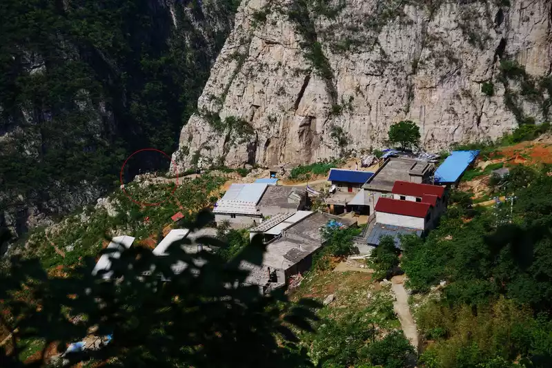 I didn't go far, and when I looked back at the village I had just passed by, my friends looked closely at my red circle marked there, which was the viewing platform here, and at that moment, I suddenly felt Great enlightenment !The vast majority of the videos I have seen on various platforms before were shot on this platform, and the perspective of those so-called cliff villages was actually filmed less than one-fifth of the real destination, no wonder the big brother I met from the bottom of his heart said: These grandsons...... Hahaha!