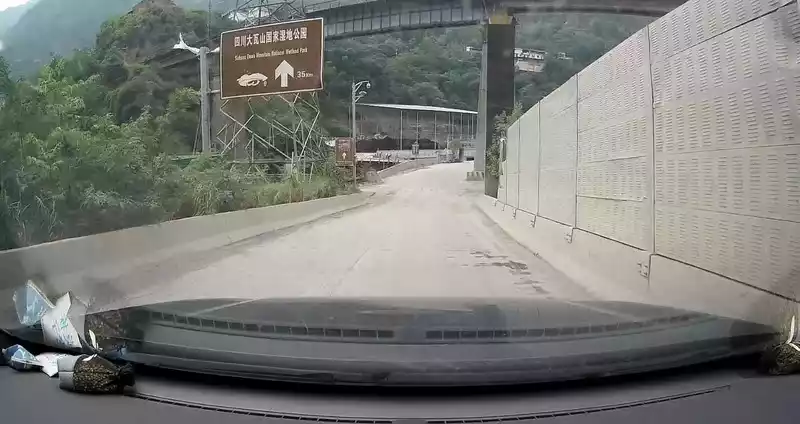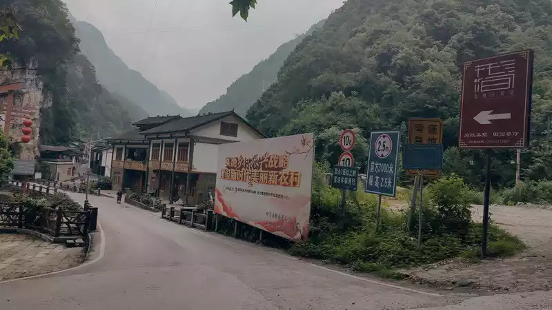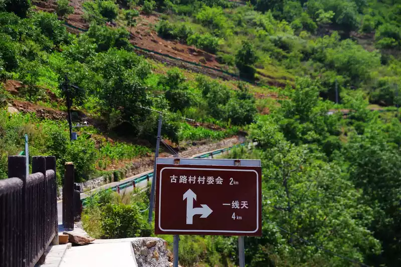 Drive forward ( in the direction of Hanyuan ) and cross the bridge about 100 meters away, there is such a sign