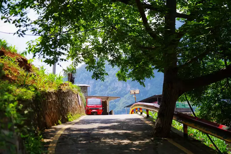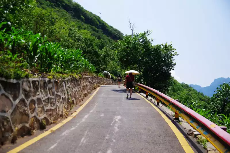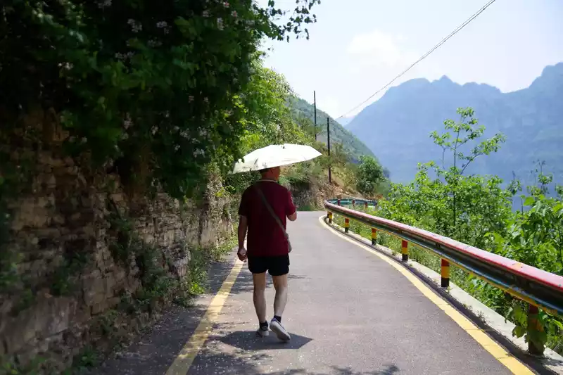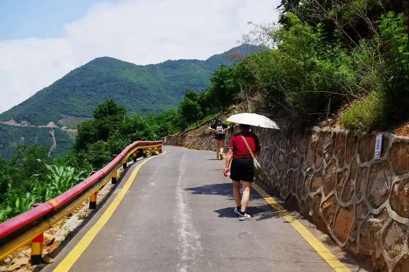These 2KM are more unique, they are all such winding mountain roads, and the biggest problem is exposure to the sun! There are no cars on this, so we later learned a little bit to provide another useful information for the friends who are coming in the future, you can contact Brother Shen or other people you know on the mountain to drive a tricycle to the cable car station to pick you up, anyway, the cost we sent over later was 15 yuan per person.This will save a lot of time and energy.