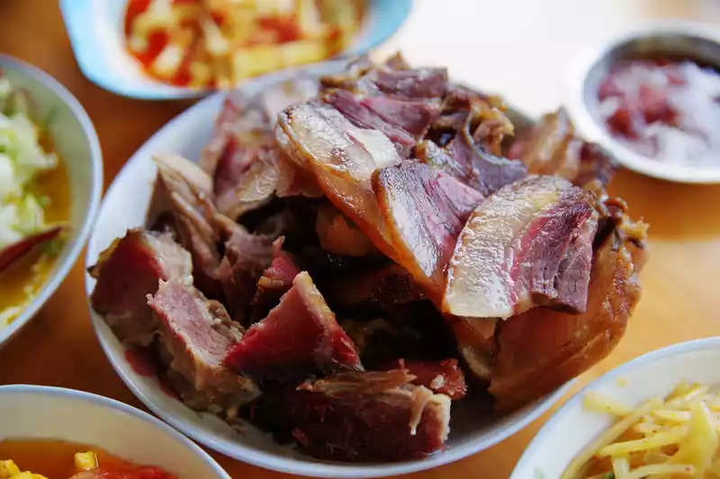 There are several restaurants and homestays here, the restaurants are basically tofu pudding rice, we randomly chose a "Biao Ge", sitting on the edge of the Dadu River to eat in a good environment, the taste is average, especially the Tuotuo meat is actually made of lemongrass, and the good Daliangshan flavor makes the taste of Thai cuisine.