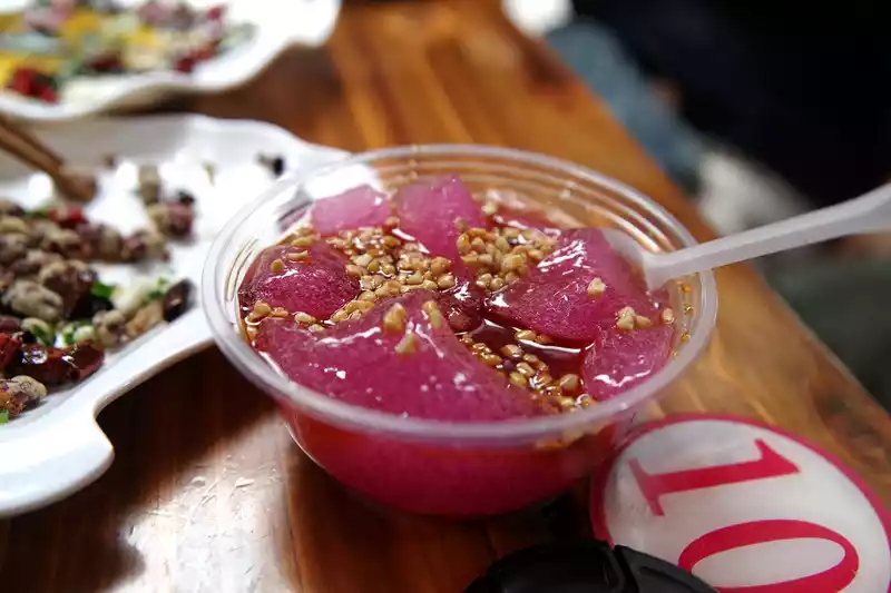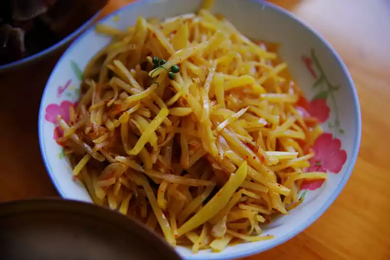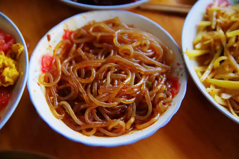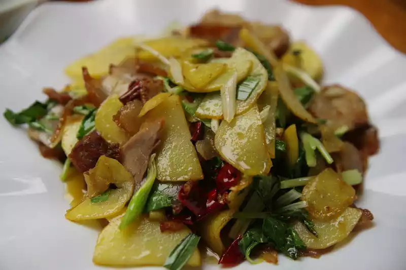 We asked the mother of the owner of the homestay which restaurant to recommend, and the old lady was very honest, she said that she would never eat here, she didn't know, but she knew that the chef of the restaurant next to them had 15 years of experience, so dinner was here. Ordered Hanyuan specialty, jar meat and potato slices, the ice powder sold in the whole village is made of dragon juice, the color is very cute.
