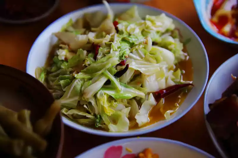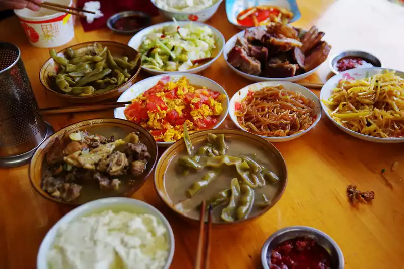When our group of three was resting, we met two people, also middle-aged people, they drove directly to the cable car station opposite, took the cable car over, found a place to live in the village, and finally found Brother Shen to live here, it seemed to be 130 a day of food and accommodation. The information they gave me was to drive to the cable car station, an hour and a half after passing from the first village of the canyon, the road was not easy to walk or find. Just as they were together, we had a meal for 5 people, one table. The meal fee is charged according to 40 yuan per person, it should be cheaper if there are more people, not to mention the rest, local chicken, local eggs, especially old bacon, absolutely praised! The couple said that they would kill a chicken directly at night!