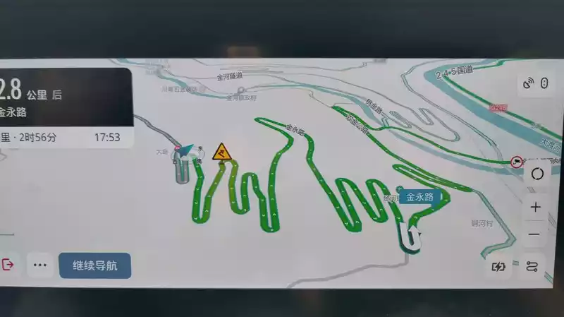 Navigation to an intersection, I was confused at first about the road in front of me, because it seemed to be building a road according to the direction shown by the navigation, and it was broken. The navigation direction in the picture below is the right direction, but the "Flower Stream Pass" sign appeared in front of me, and I turned left according to the sign in ignorance.