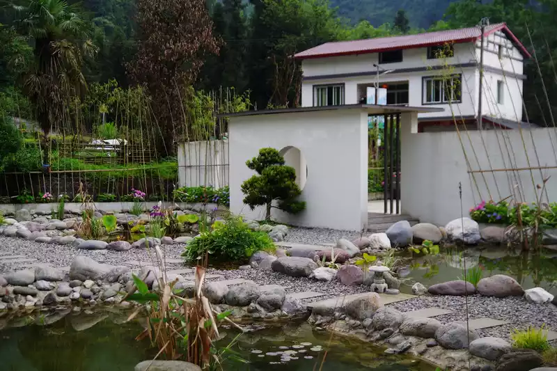 And when I crossed the Dadu River into the mountains and saw the sign of Dawashan National Wetland Park, a sign behind it was actually "Flower Stream B&B", At that time, I felt that this homestay was a bit NB.