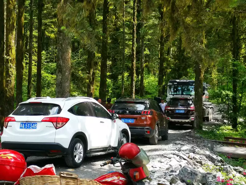When leaving, a small episode, there is a section of dirt road in the middle of Luerping, which is used by mining vehicles, the whole Luerping is now very beautiful, and a perfect trail has been built, but other plans are indeed lagging behind, on the one hand, there is no parking lot, no bathroom, etc., we came early, there was only a car with a Beijing license plate parked on the scene, we parked the car very conveniently, when we came out, there were nearly 10 cars parked here, and the magical Sichuan A actually stopped directly on the dirt road to block the road, Then it happened that several construction vehicles and large trucks were about to come in, and a large truck was about to come out, and it collapsed, and the driver on the scene scolded the parked people crazy.