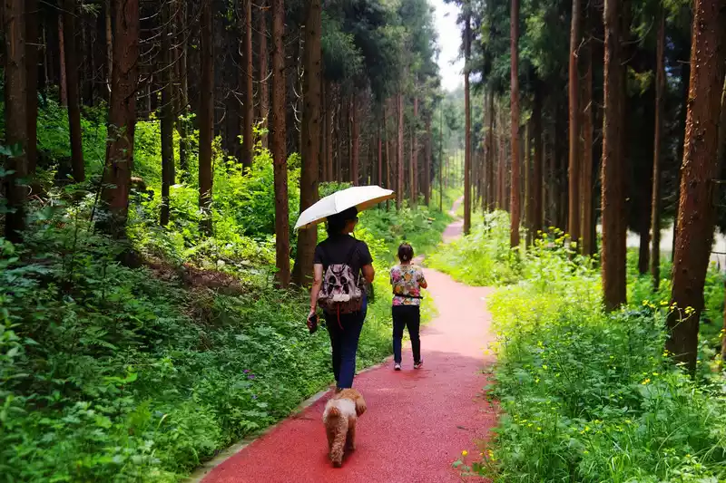 On the first day, we set off relatively early, in fact, if you just want to feel the Jinkou River Grand Canyon, including going to the "White Bear Gully", or even just checking in at the Internet celebrity check-in places in "Gulu Village", Chengdu One day round trip is no problem, or go to the Grand Canyon and then stay at Dawa Mountain, the day is also easy. Because we are planning for three days and two nights, my wife and I take our parents and elderly together, we never do trips just to check in, so the time arrangement is relatively easy. Starting from home at a little after 8 o'clock in the morning, Tianfu Street was blocked for nearly 20 minutes on the high speed, and after 9 o'clock to Jiajiang Tianfu Rest Station to rest, if you can go earlier, in fact, Tianfu Rest Station to have breakfast is a good choice. Here is a little hint, many friends may know that the Tianfu rest area is still an AAAA scenic spot, in fact, behind the charging station in the rest area, there is a museum, and there is a small garden, where it is very comfortable to rest and charge.