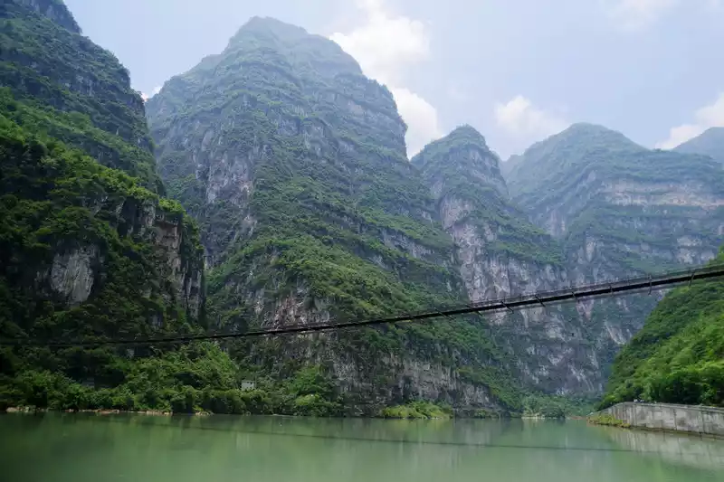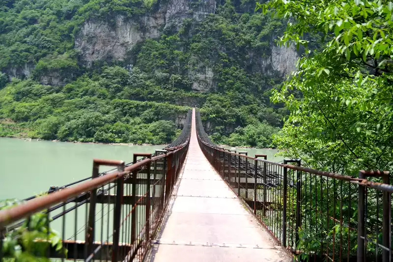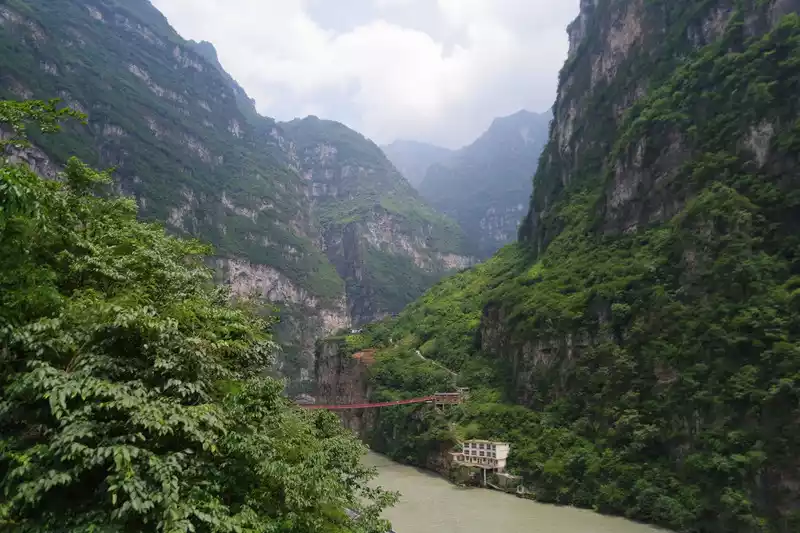After eating, there is another important point here, friends must read carefully!The entire so-called Sichuan most beautiful water highway Jinkou River Grand Canyon section, there are two suspension bridges, basically everyone checks in and takes pictures of the concentric bridge in the first village of the canyon where we stayed later, and the other one not far from the visitor center of this scenic spot, on the one hand, it actually belongs to the internal use of the hydropower development company, on the other hand, it is not very easy to go up. Because I went this time, I will tell you a little.