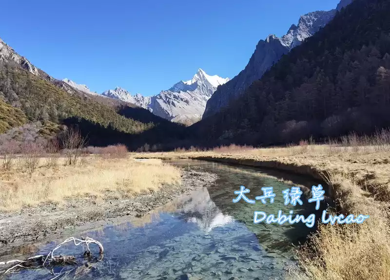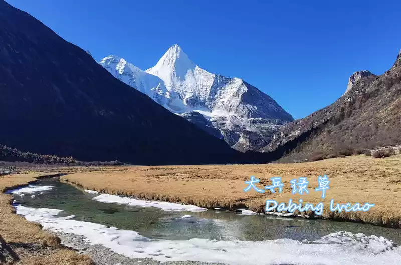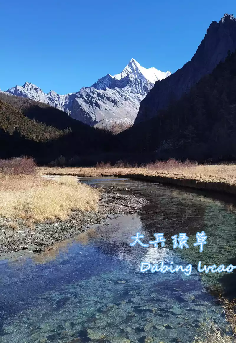 A small stream passes through the middle of the Chonggu grassland, and the figure of Xiano Dorji can be seen from a distance. Shano Dorjee is the Vajra Hand Bodhisattva in Tibetan Buddhism, it is 5,958 meters above sea level, and the main peak is triangular pyramid, which is very eye-catching.