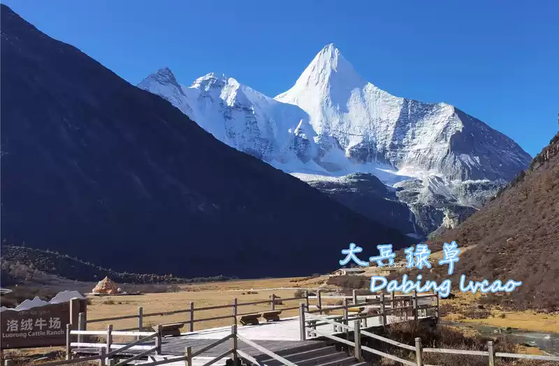 Luorong Cattle Farm is located in the center of the Aden Scenic Area, at an altitude of 4150 meters, it is surrounded by the three sacred mountains of Aden, under the blue sky and white clouds, there are snow peaks, forests, and waterfalls in the distance. The nearby Gongga River passes through the middle of the pasture, and the wooden houses are lined up on the hillside next to the stream, forming a natural landscape painting.