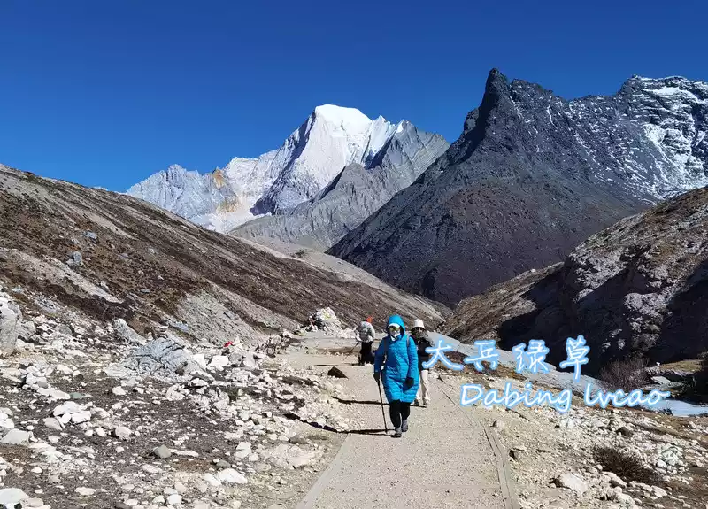 From Aden Town to Aden Scenic Area to take a scenic sightseeing bus to drive more than 30 kilometers of mountain road, the sightseeing car climbs from the foot of the mountain to the mountainside, a snow-capped mountain appears in front, this is the highest of the three sacred mountains of Aden - Xiannai Ri Peak, the silent car suddenly became lively, the driver seemed to understand the mood of the tourists very well, parked next to an observation deck, so that tourists from afar could see the majestic appearance of Xian Nai Ri from afar.