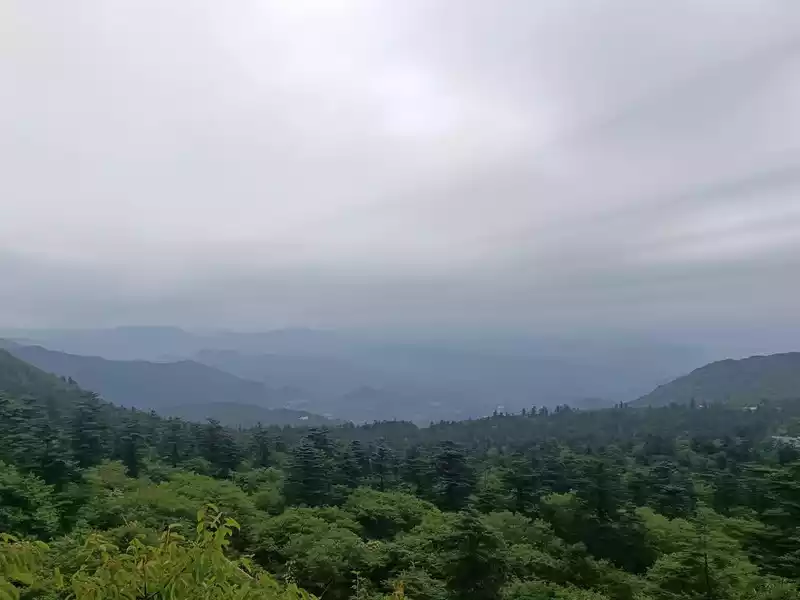 All the way down, the mountains are green, but there are quite a lot of things to appreciate. All the way down from Wannian Temple to Qingyin Pavilion, you can choose to go up to the ecological monkey area to see the monkeys, but we don't have much physical reserve, so we give up, choose to go all the way down to the Wuxiangang parking lot and take the car back to the bottom of the mountain, there are some scenery along the way. The scenery of Mount Emei is mainly layers of mountains.