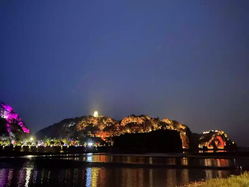 Look at the night view of Leshan, it is also very beautiful. Look at the lights, all sorts of red, blue, purple, yellow, and so on. A variety of different colors of lights come together to dress up the city.