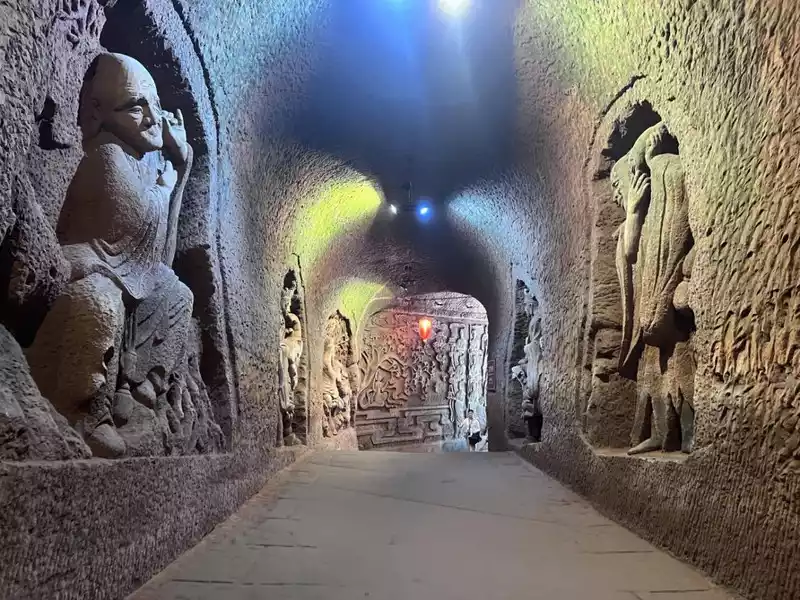 Afternine o'clock, I finished the boat, and temporarily decided to go to the Oriental Buddha Capital (80RMB/person), so come and go. This attraction is actually on the back of the Big Buddha. Walking inside, there is a mysterious feeling everywhere. There are indeed many Buddha statues here.