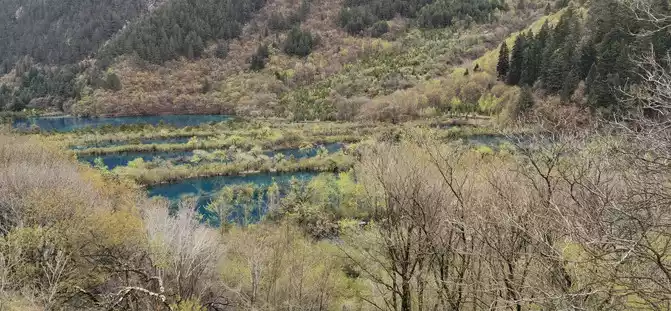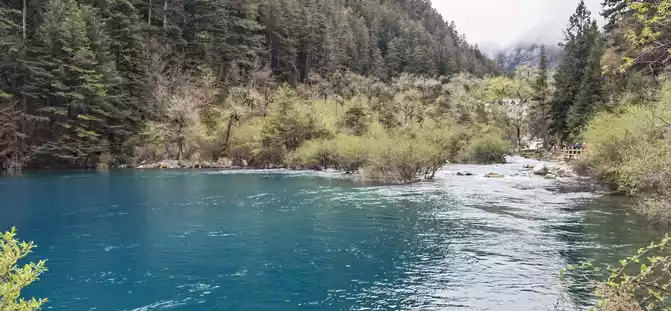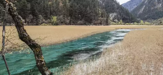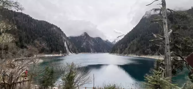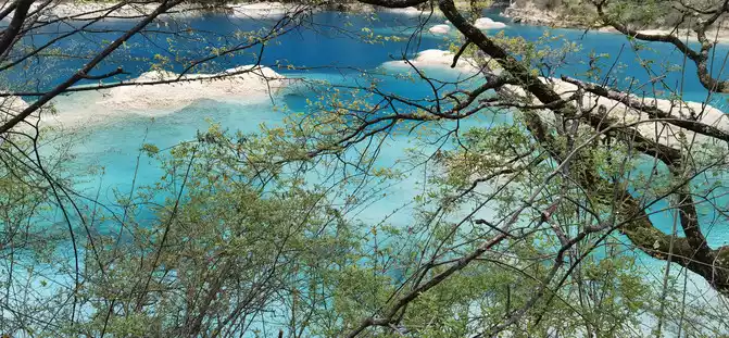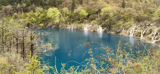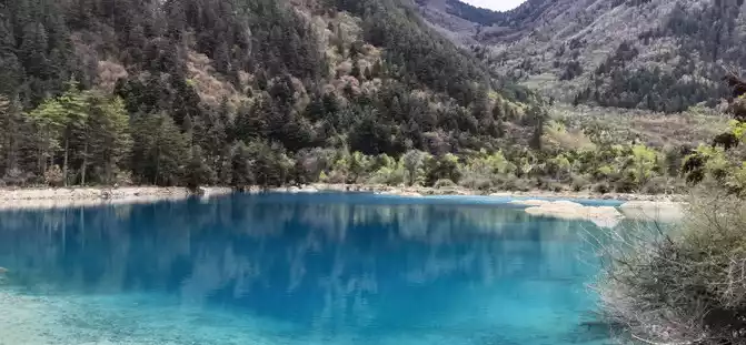 This is a dammed lake, which is the highest altitude, the deepest lake and the largest storage capacity in Jiuzhaigou, with no water outlet. All the water in Jiuzhaigou comes from this, which seeps out from the stone crevices underground, because it does not overflow in summer and does not dry up in winter, so it is called a treasure gourd that is dissatisfied and does not leak.