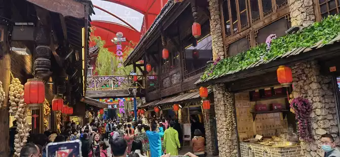 The ancient city has local characteristic landscapes such as the ancient tea horse road, Tang Tibetan square, the goddess of sex, the Tibetan market, and the Tibetan and Qiang carving towers.